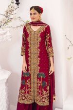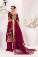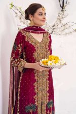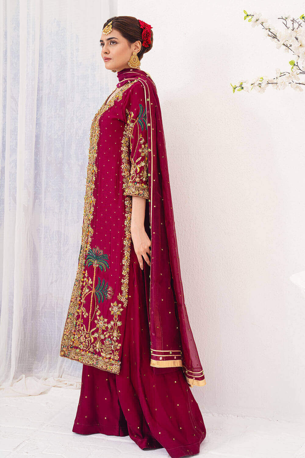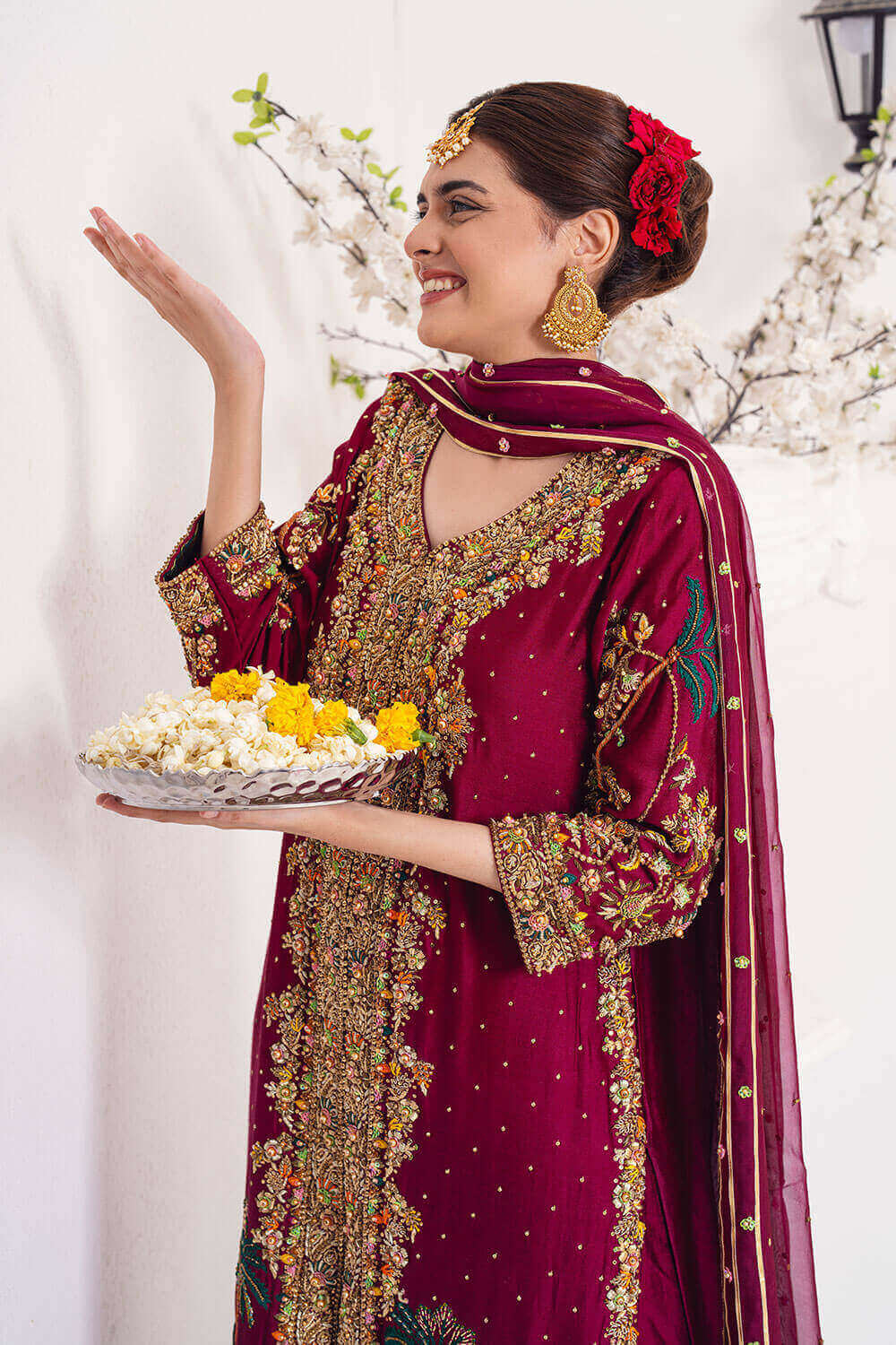 Unveil your inner sparkle with the Golden Magenta Dream. This Magenta Silk Shirt features intricate hand embroidery and a stylish front-opening design. Complement it with Culotte Pants for a chic look and an airy Organza Dupatta for an added touch of grace. Ideal for adding a splash of beauty to everyday moments.