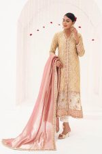 Elevate your formal wardrobe with this elegant ivory georgette shirt, featuring exquisite hand-embellished embroidery. The cotton silk trousers provide a luxurious feel, while the lamé tissue dupatta, adorned with pearl spray and hand-embellished borders on all sides, adds a sophisticated touch. This refined ensemble seamlessly combines classic grace with contemporary flair, making it a standout choice for any formal setting.
