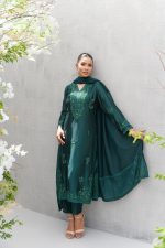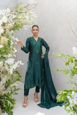 Self Embroidered Long Style Shirt with Straight Silk Pants and Embroidered Silk Dupatta |
