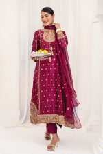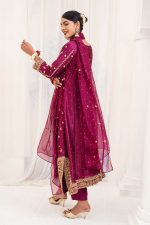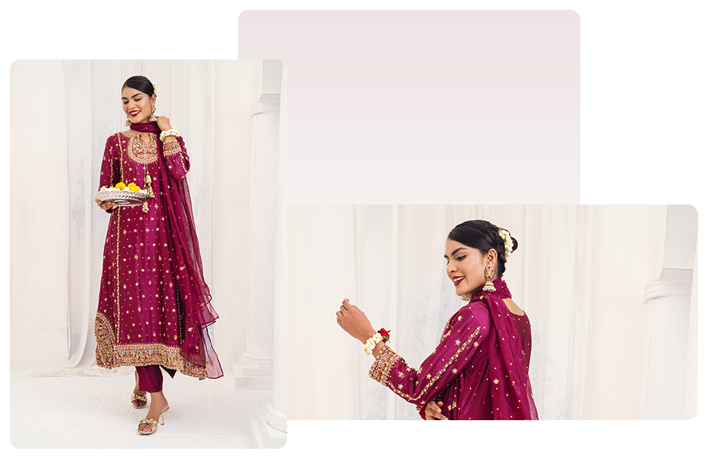 Embrace elegance with this Magenta Silk Shirt, featuring exquisite Zardozi embroidery. The Silk Straight Trousers offer a classic fit, while the Organza Dupatta adds a light, graceful touch. Perfect for those moments when you want to feel both refined and radiant.